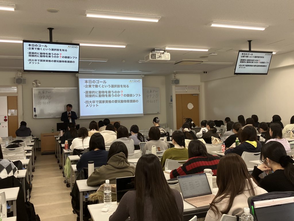 日本獣医生命科学大学の獣医保健看護学科の2年生に講義をする機会を得ました。非常に光栄な機会に深謝申し上げます。
